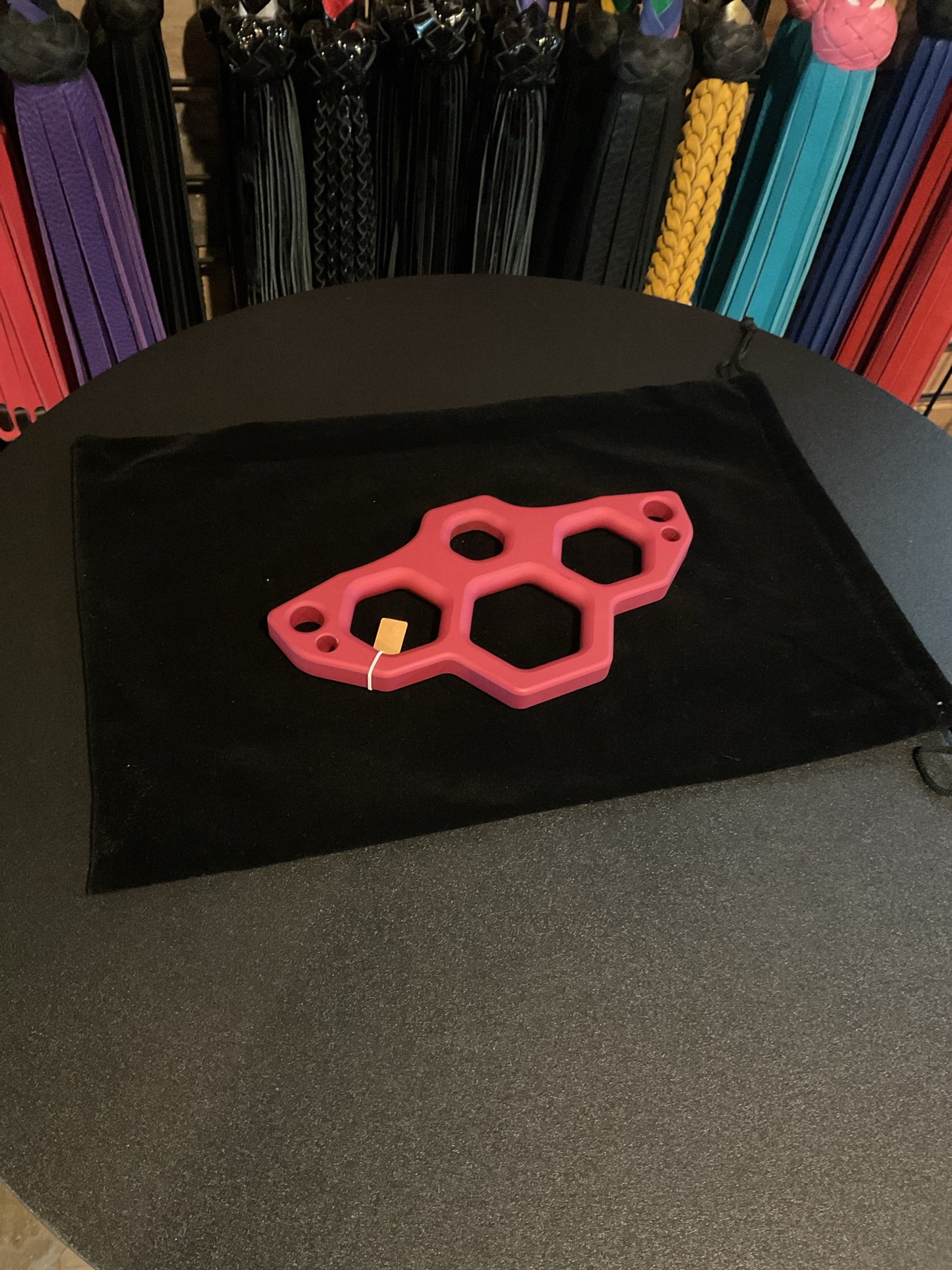The Raven is a staple in shibari suspension design — combining versatility, portability, and strength. This suspension ring, features three rope management holes that allow for creative direction and clean upline organization; with the addition of two holes for pivoting carabiners (not included) adding another dimension to your setup. The smooth radii makes it easy to pull your rope through cleanly and efficiently, ensuring a smoother transitions. Flat surfaces inside each opening prevent crossovers and jams.