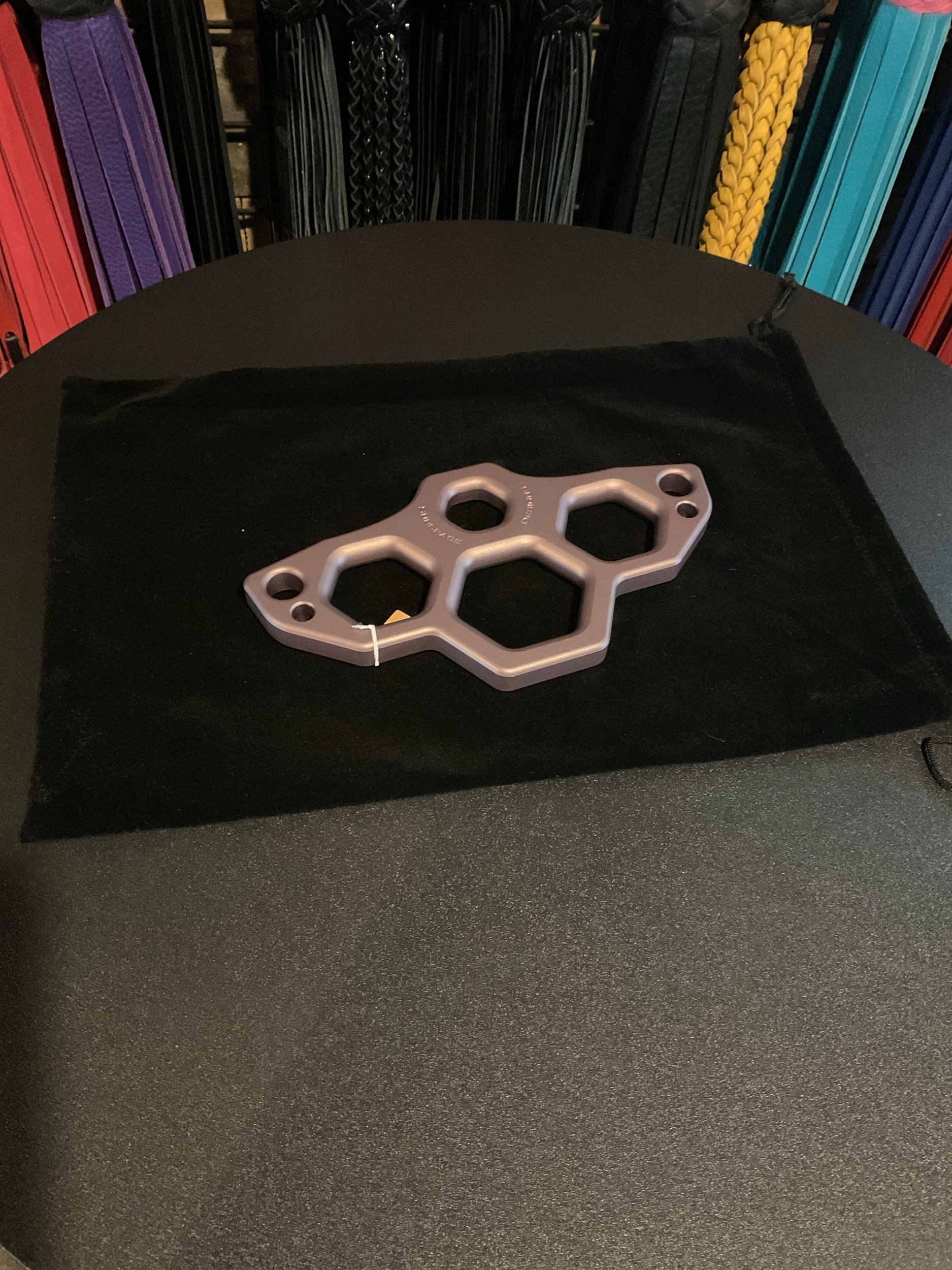 The Raven is a staple in shibari suspension design — combining versatility, portability, and strength. This suspension ring, features three rope management holes that allow for creative direction and clean upline organization; with the addition of two holes for pivoting carabiners (not included) adding another dimension to your setup. The smooth radii makes it easy to pull your rope through cleanly and efficiently, ensuring a smoother transitions. Flat surfaces inside each opening prevent crossovers and jams.